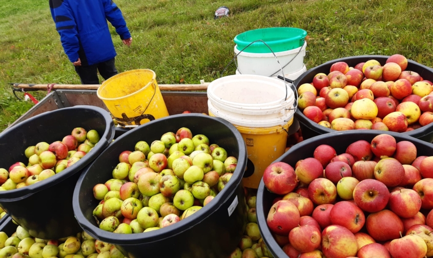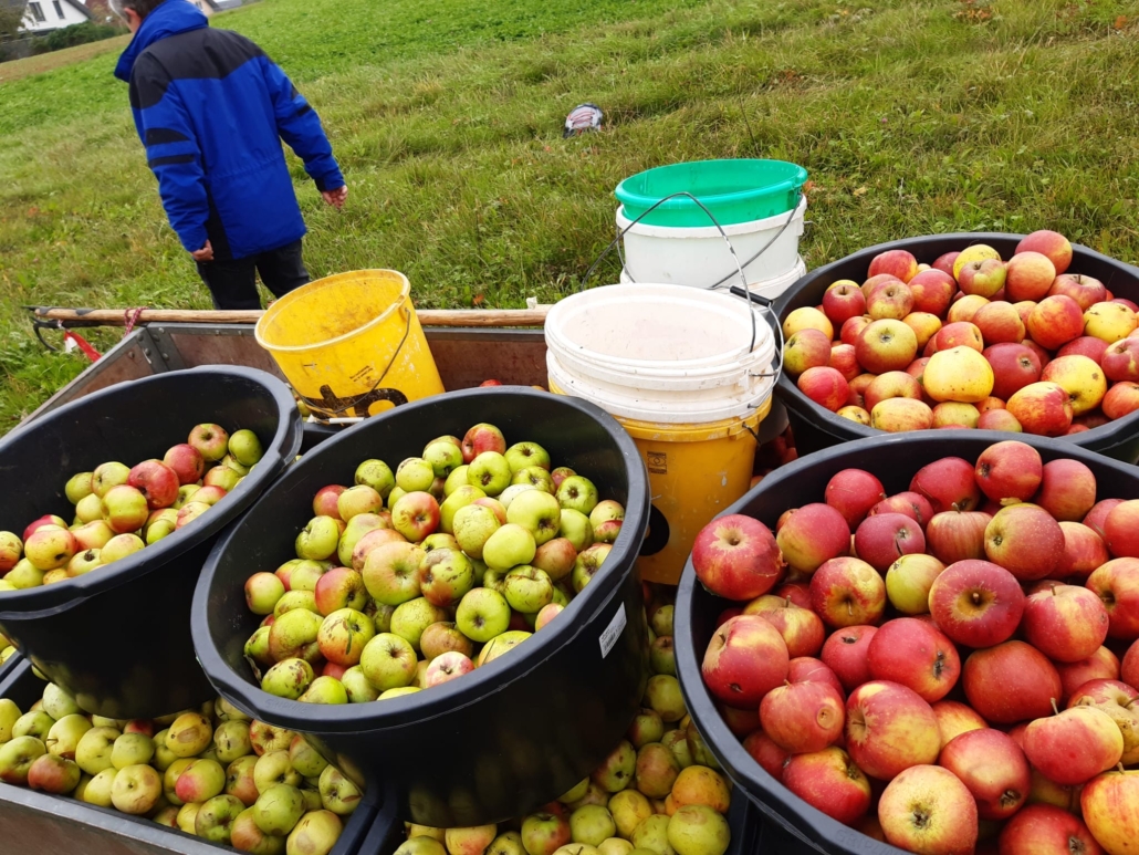 Bei der zweiten Aktion einige Tage später konnten dann die Drittklässler praktische Erfahrungen sammeln. Gemeinsam mit drei engagierten OGV-Ausschussmitgliedern lasen sie auf der Schulwiese und im Gewann Guldenäcker jede Menge Äpfel auf. Diese werden bei der Mosterei Lohrer zu leckerem Apfelsaft verpackt und der Schule in praktischen 5-Liter-Bag-in-Box-Kisten zur Verfügung gestellt.